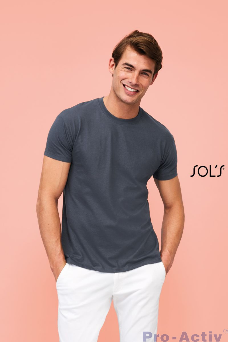 Opis: SOLS REGENT, koszulka unisex o gramaturze 150 g/m?, najlepiej sprzedająca się koszulka w asortymencie SolS od 1995 roku, z jedną z najszerszych gam kolorów na rynku. Renomowana jakość sprawia, że jest to produkt referencyjny na rynku europejskim, dostępny również w wersji dziecięcej. Wzmocniony klejony szew na szyi, kołnierz z elastanem, dzianina rurkowa. Szczegóły tkaniny: 150G/M2 Single Jersey, 100% półczesana bawełna Ringspun. Aby dopasować rozmiar, zapoznaj się z tabelą rozmiarów w sekcji dokumentacji produktu.