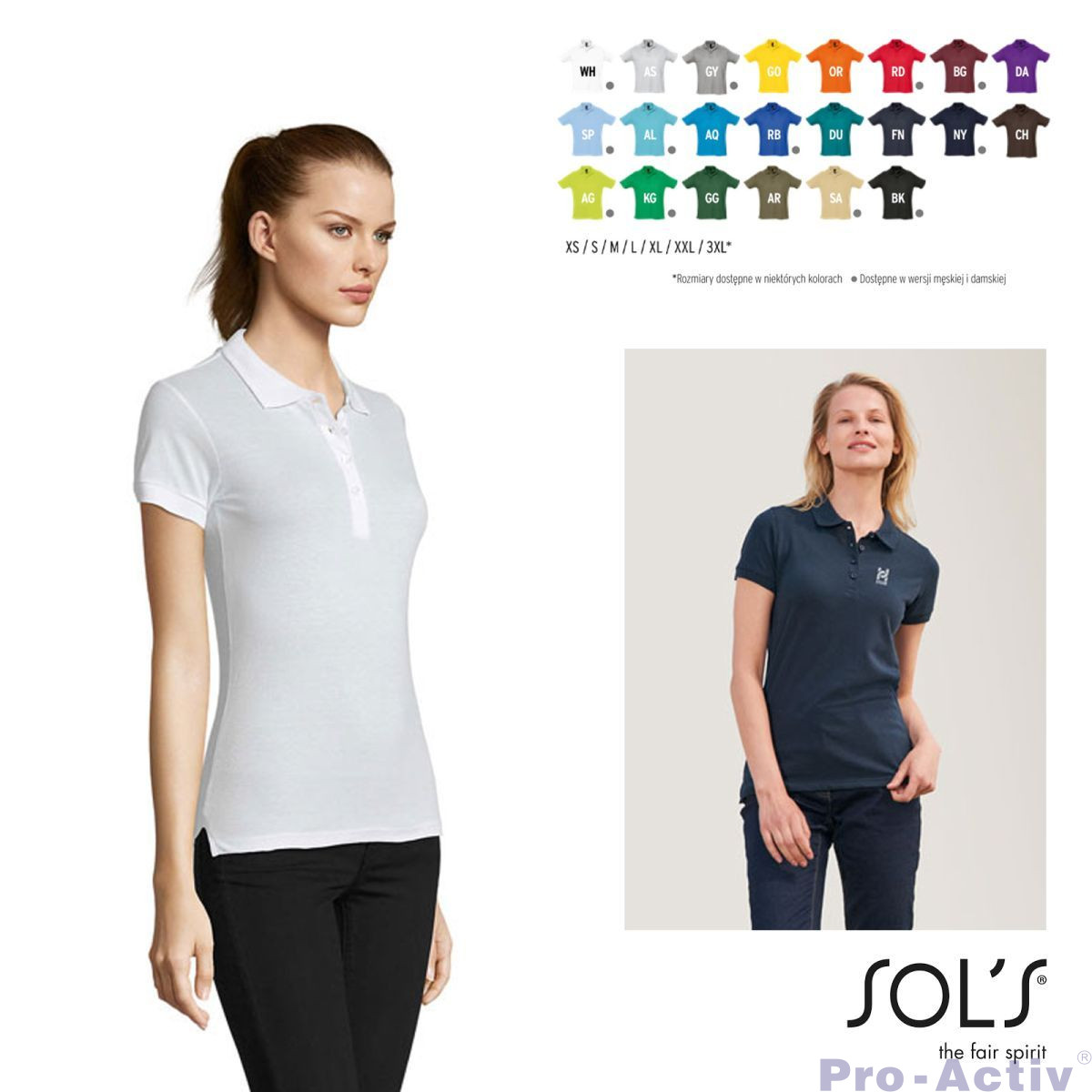 Opis: SOLS PASSION Damskie Polo koszulka damska z kołnierzykiem, 170 g / m?,w 100% bawełna pique. Produkt owdoskonałym stosunku jakości do ceny, szeroka gama kolorów, piękny kobiecy krój. 4 guziki, prążkowany kołnierzyk i rękawy, wzmocniony tasiemką dekolt, prosty dół, boczne szwy, zapasowy guzik w bocznych szwach. Smukły krój z krótkimi rękawami i bocznymi szwami. Odrywana etykieta. OEKO-TEX?. Rozmia